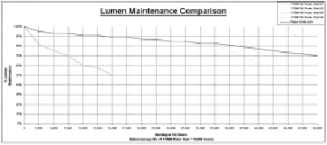 LM-80测量标准 拥在产品质量上有一个无与伦比的声誉,得实区分自己从许多在LED市场通过确保所有用于得实照明产品的LED芯片符合IES lm - 80标准,一个北美照明工程协会(IESNA)正式的质量标准。 LM-80是一种常见的光学测量准则,通过对产品约6000小时的持续测试分解成不少于1000小时,在不同的结点温度,推算出产品在35000小时后的光通量效能。 流明维持是一个衡量一个光源如何保持它的流明输出,通常显示为初始光输出的一个百分比。一般情况下LED在运作35000小时以上后依然维持原有光通量70%以上——相比传统光源的一个显著改进。 |